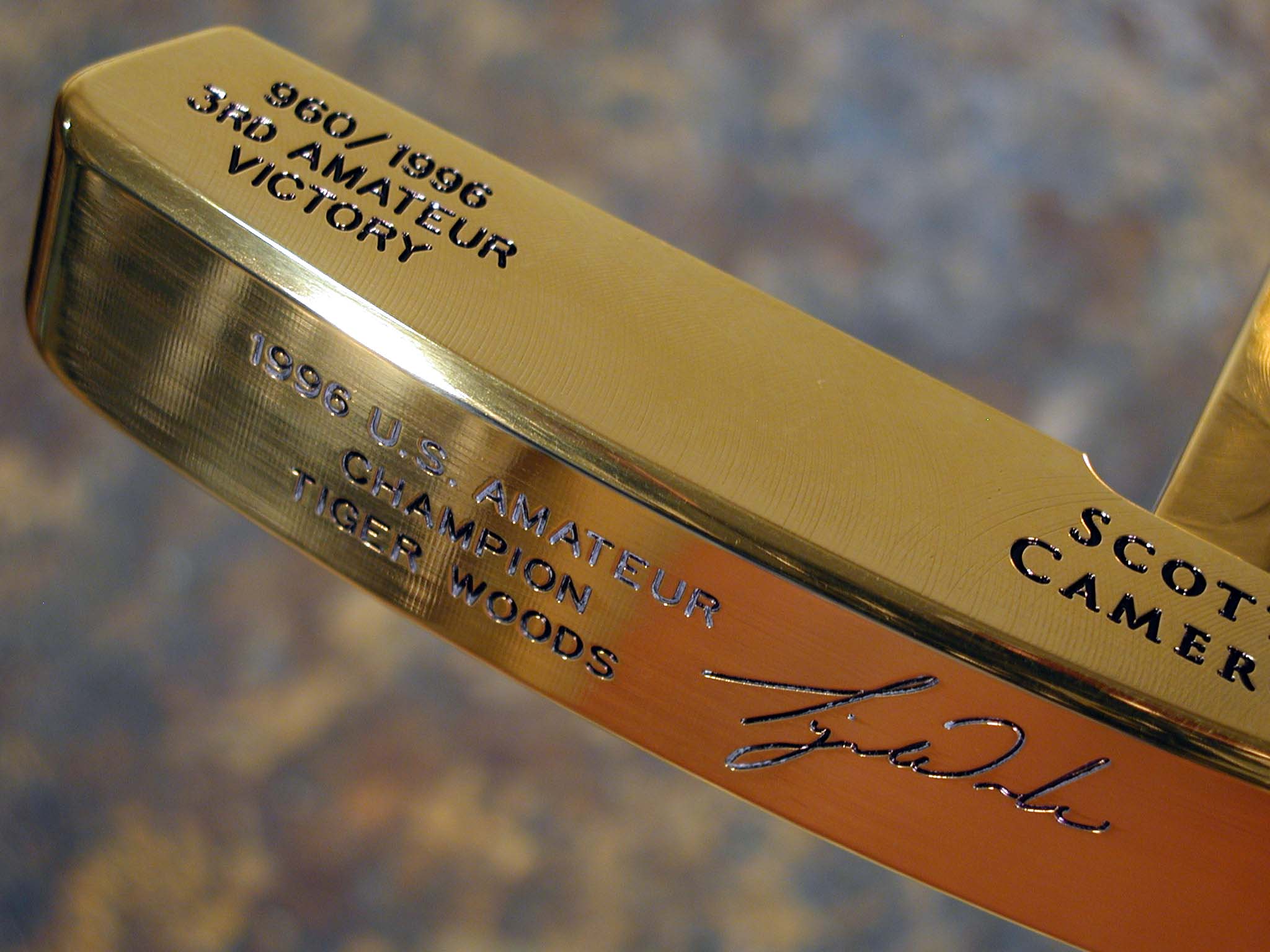 Tiger Woods 3rd Amateur Victory putter in gold. |