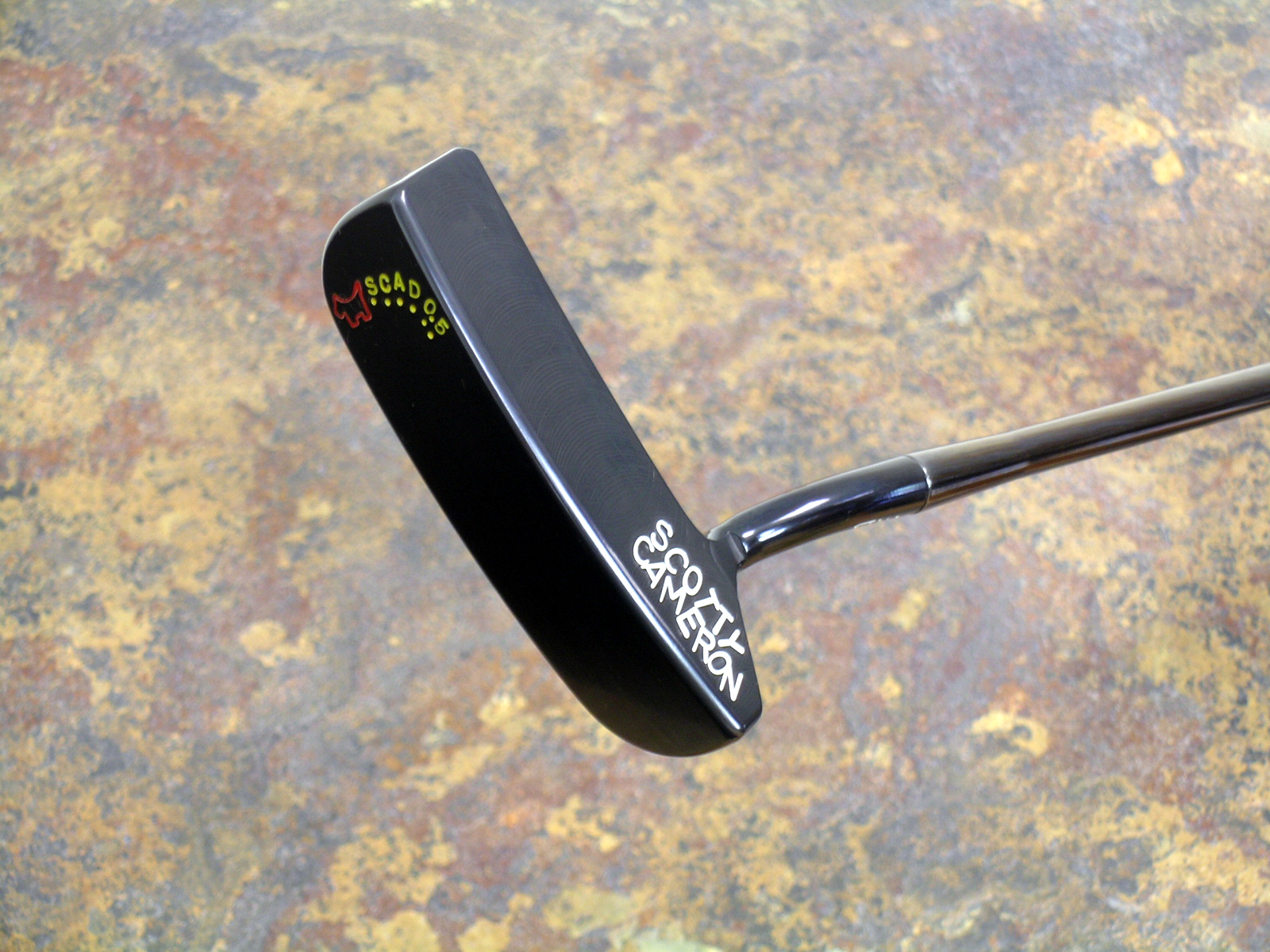 2005 modified Circa 62 II in a black oxide finish with a welded flowing neck, a scotty dog and a circle sight dot. 1 of only 18 pieces made for the 2005 Scotty Cameron Appreciation day. |