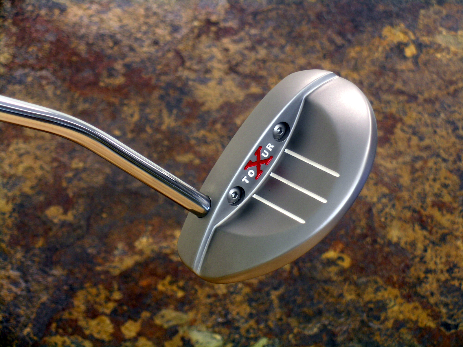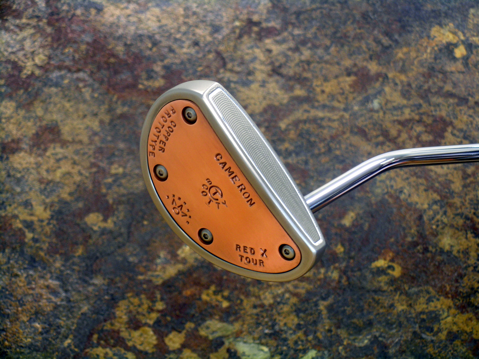 Made for the tour prototype Red X at 350g with triple sight lines and a circle and a Cameron crown hand stamped on a copper sole plate. |