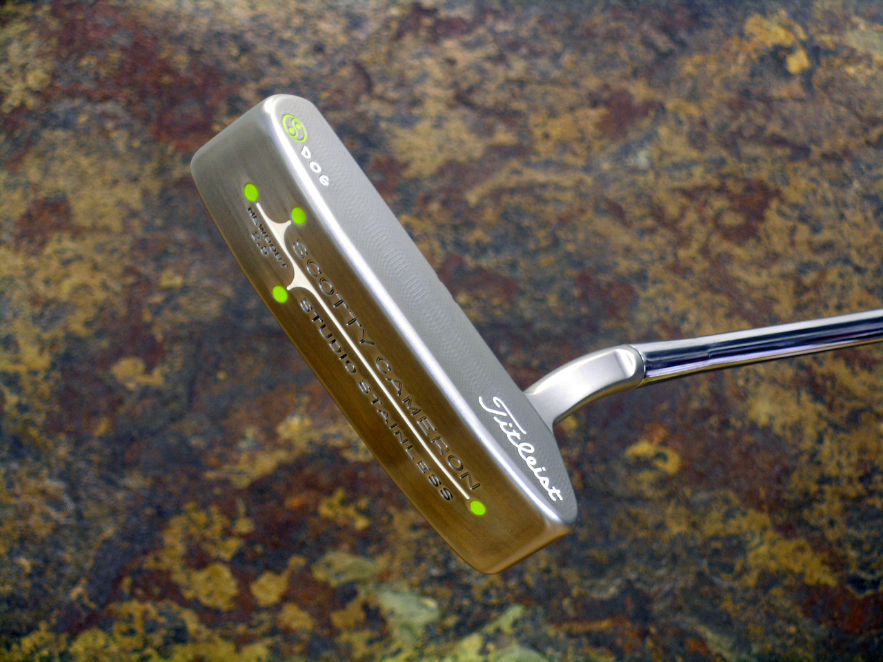 Studio Stainless Newport 2.5 in SSS with triple flangelines, dual toplines, a custom shop stamp, a cameron money, a ying yang stamp and 'DOG'. |