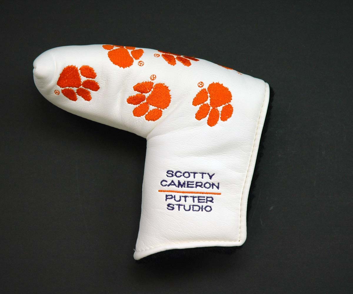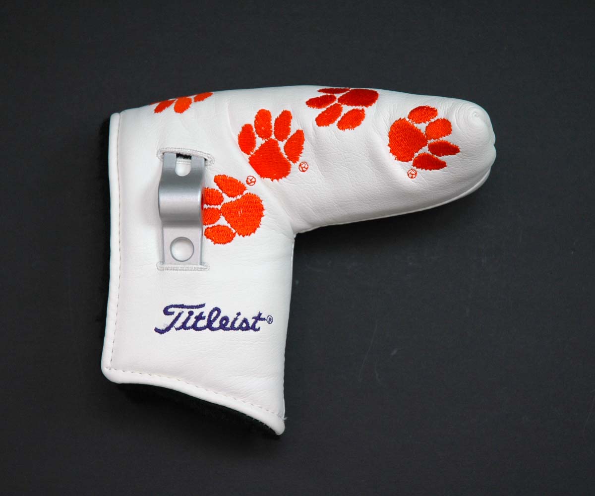 1 of 10 white ultra leather putter covers with embroidered clemson paws. Made for the 2003 NCAA Golf Champions, the Clemson Tigers. |