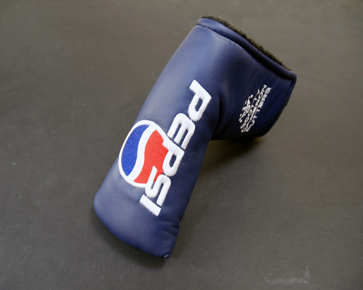 Rare prototype blue putter cover with the Pepsi logo and signed by Scotty. |