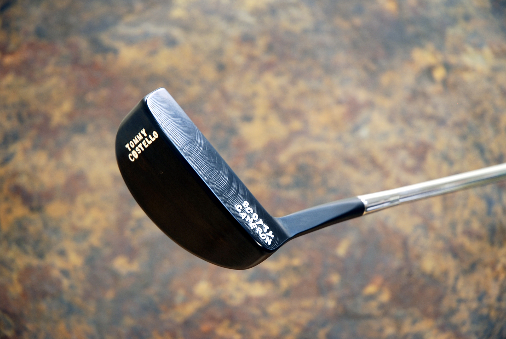 Made for Tommy Costello tour Del Mar 3.5 in a 3X black finish at 350g with a vertical line, dual flangelines, a scotty dog and a circle T stamp. |
