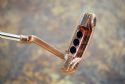 Made for the tour copper plated Scotydale 009. Newport Beach style head with a welded long neck, big tour dots, a flangeline, snow and a circle T stamp. |
