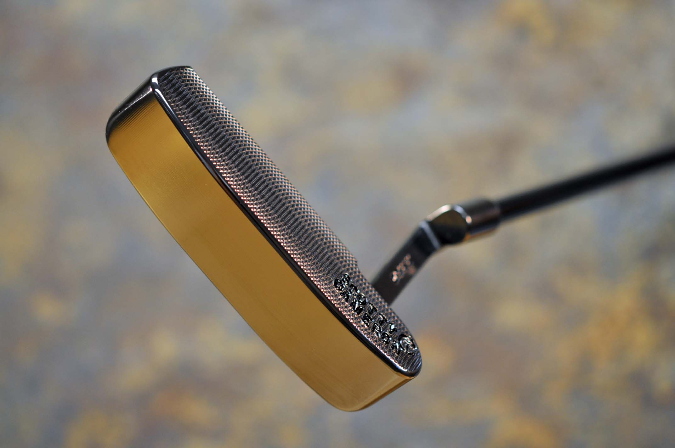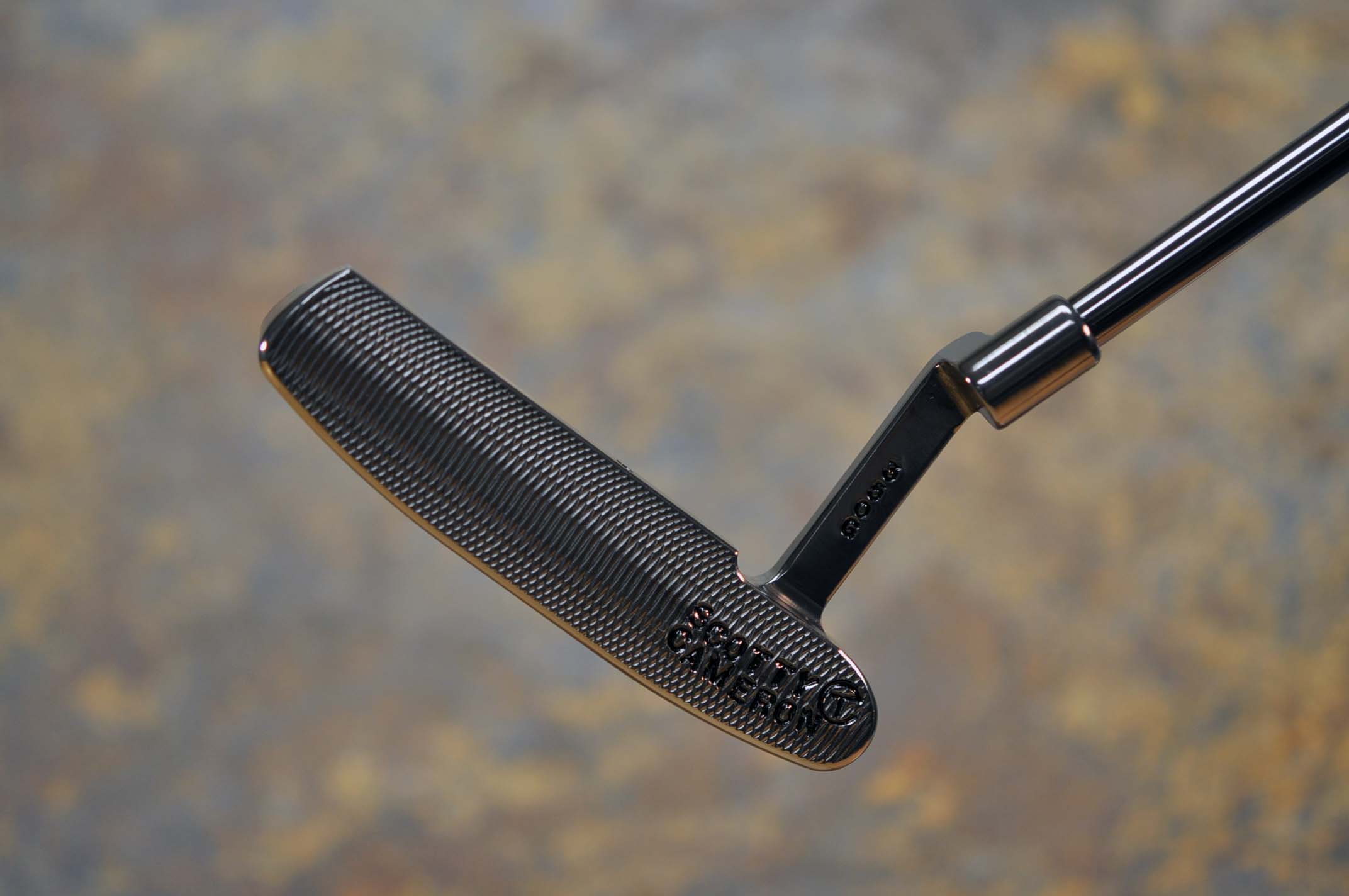 Made for the tour deep milled 009 prototype in a black PVD finish at 350g. Newport style head with a crowned 'C', a sight dot and a circle T stamp. |