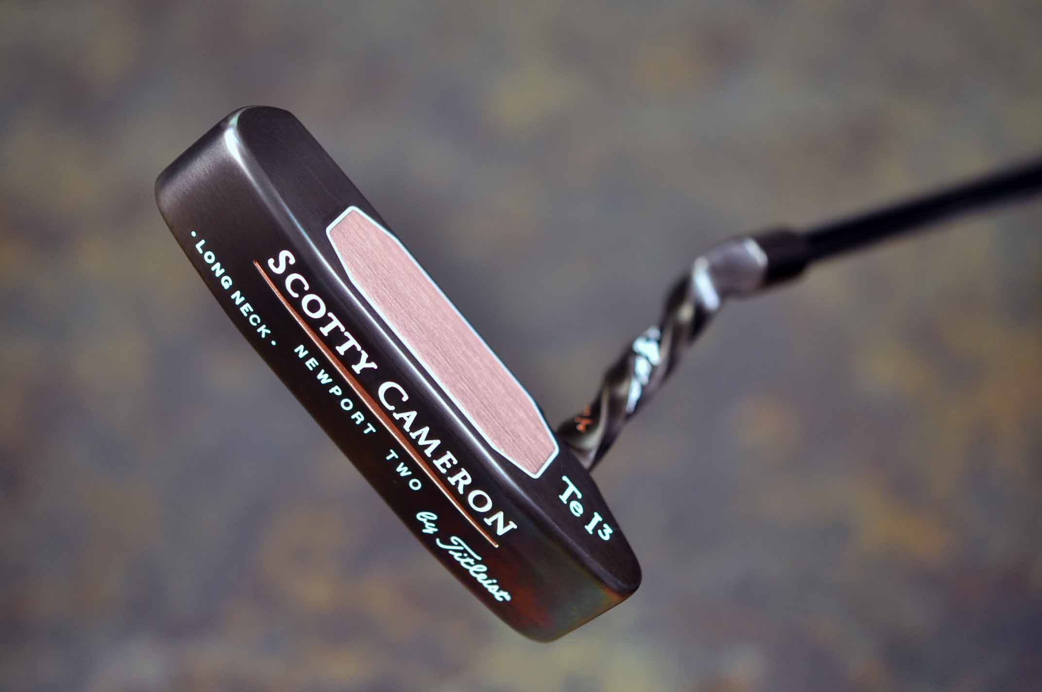 Rare teryllium Newport II in an oil can finish with a twisted long neck. Scotty demonstrated in the tour department the pliability of his putters by twisting the neck. |