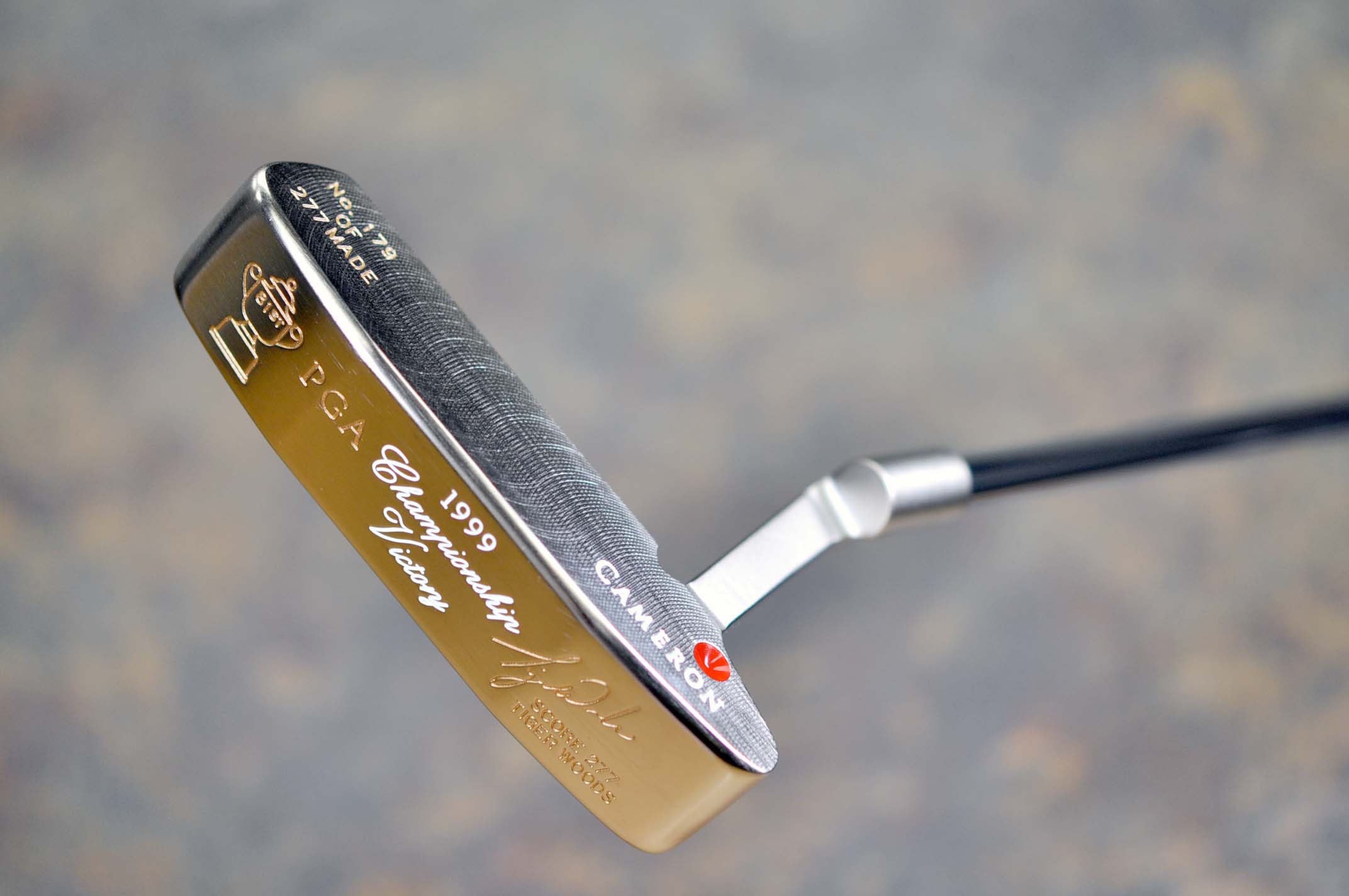 Tiger Woods' 1999 PGA victory putter. Newport II in a pro platinum finish with a sight dot, tour dots and numbered 179 out of 277 pieces made. |