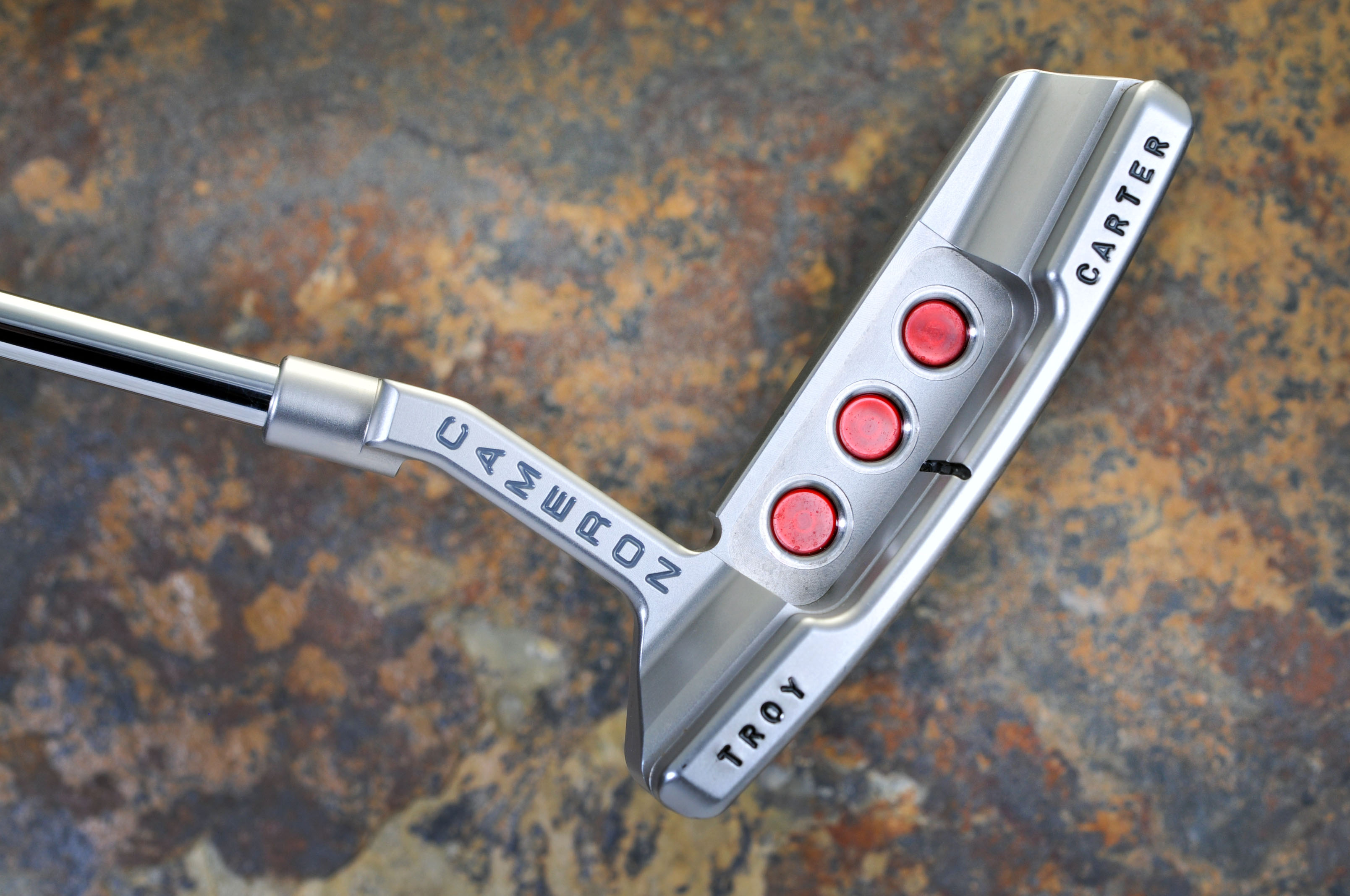 Deep milled Select Newport 2 in SSS with 10g sole weights, a flangeline and “TROY” & “CARTER”. |
