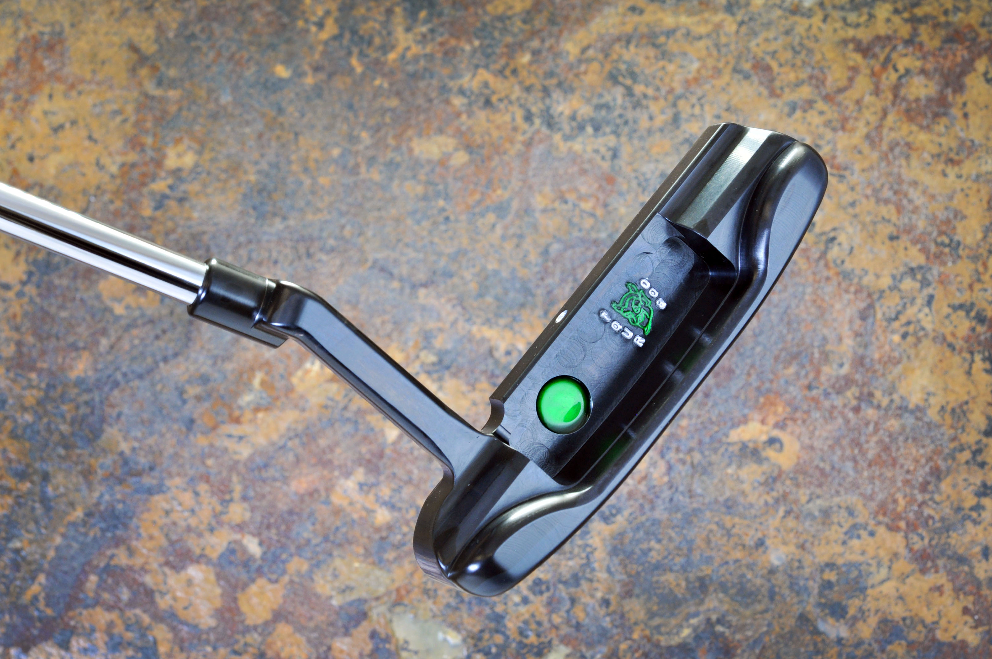 Tour 009 in a brushed black finish at 350g with big tour dots & a Green Demon. |
