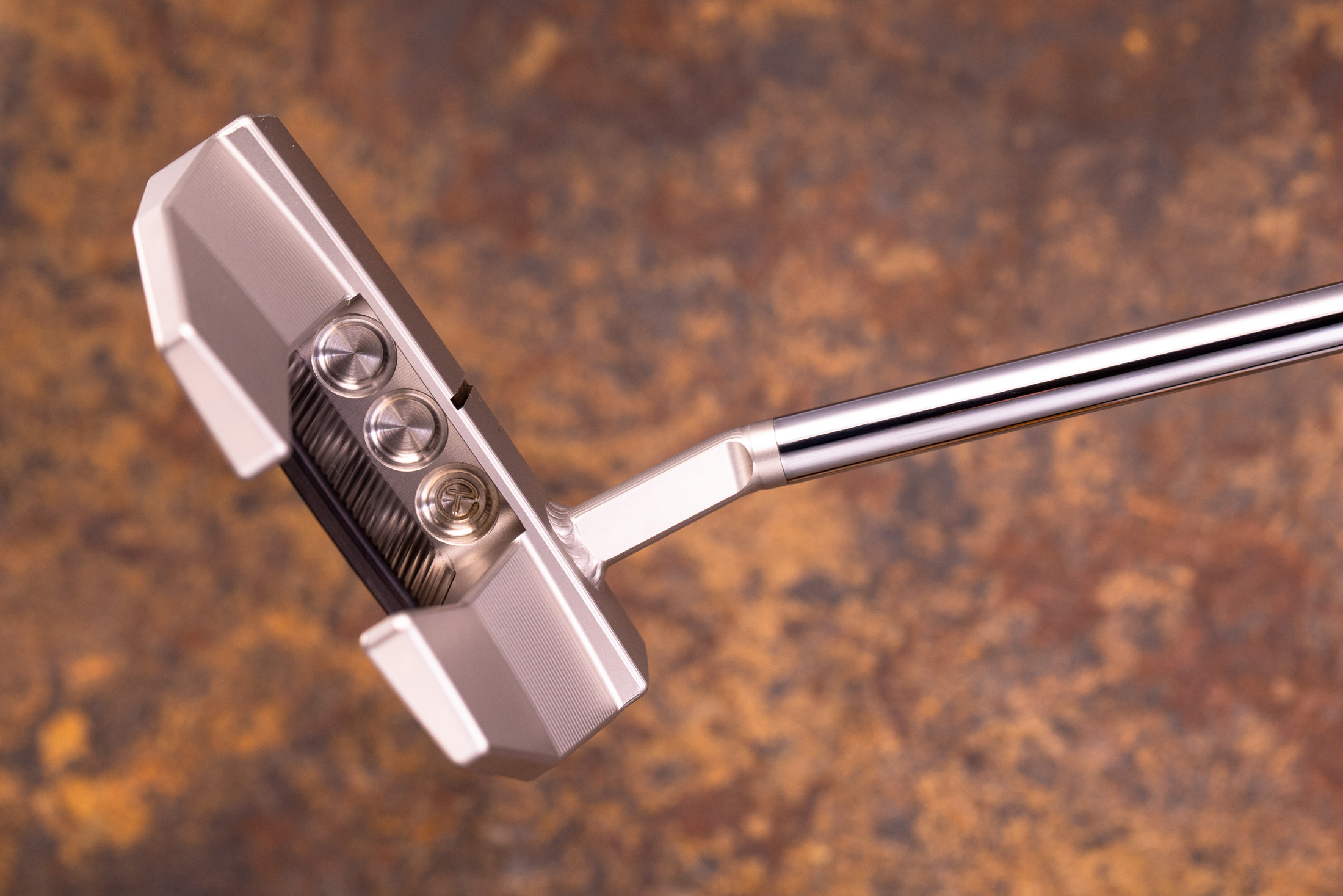 Left handed tour prototype with a welded FloJet neck & 20g circle T sole weights. |