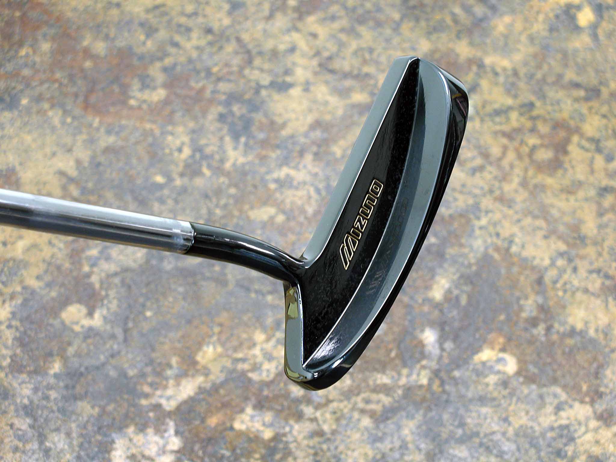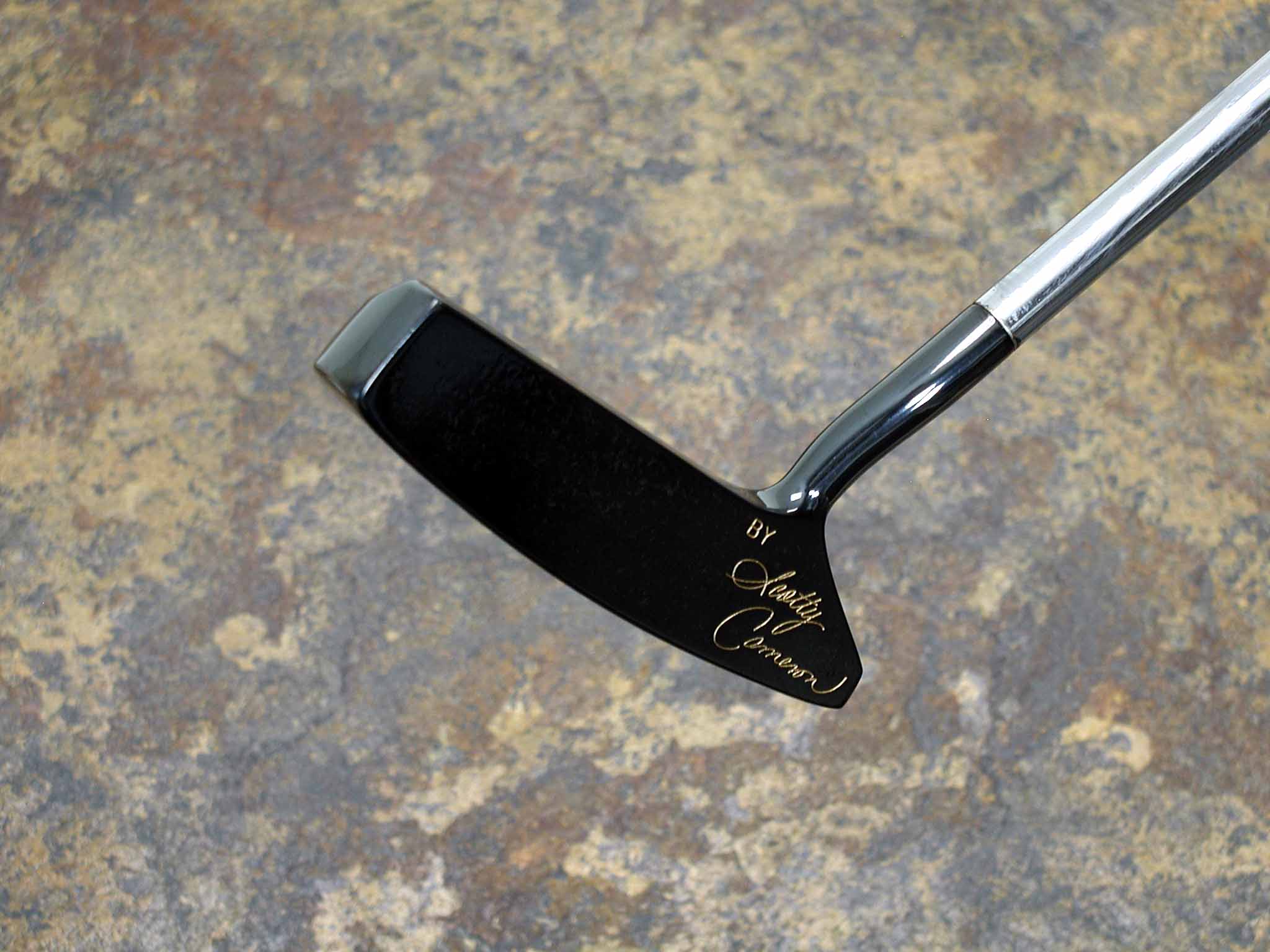 Mizuno M-300 by Scotty Cameron. Black Oxide finish. Putter has been cut down and is light. Paint fill and grip are not original. |