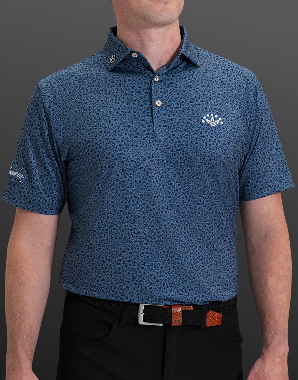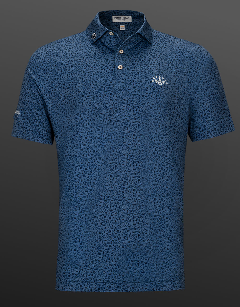 Create your own holiday story with Scotty’s latest polo crafted from a 92% polyester / 8% spandex performance fabric that’s easy to take care of, wicks away moisture and feels great with four-way stretch benefits. With a custom-designed holiday movie light-inspired print, as well as our expertly embroidered 7 Point Crown, Circle T and PinFlag sleeve treatment, enjoy year-round Summer Comfort fabrication with this classic fit polo shirt in blue haze.