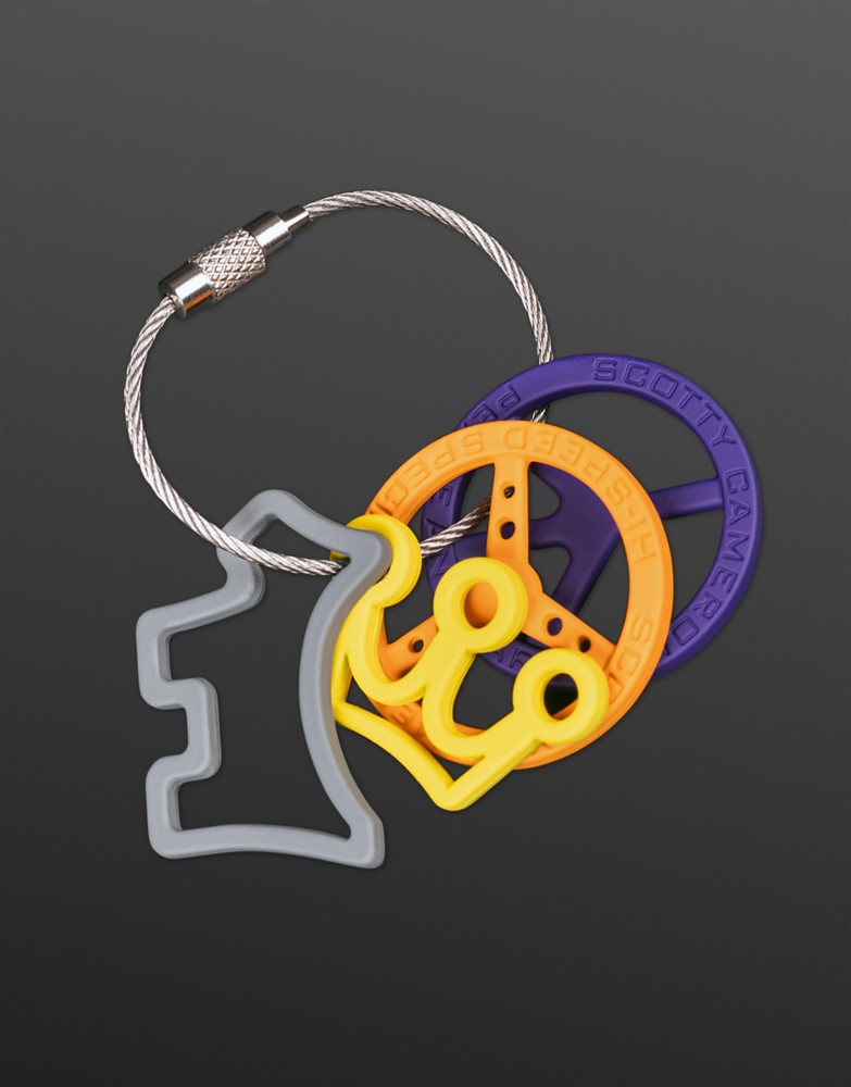 Marking putts is always fun with Scotty's latest Mini Cameron Coins fashioned into iconic symbols like his Scotty Dog, Peace Sign, Mini Crown and Steering Wheel. In a new installment of colors and kept together with an industrial braided stainless steel cable ring lock, these creative characters are made of metal and rubber-coated for a user-friendly feel that will definitely get some attention when you mark your next putt.