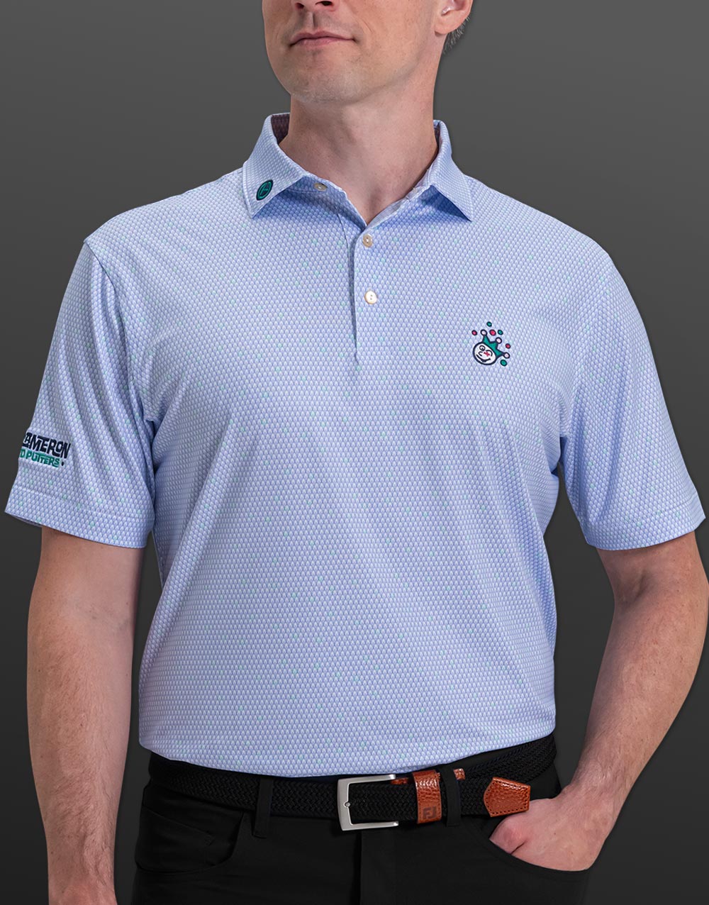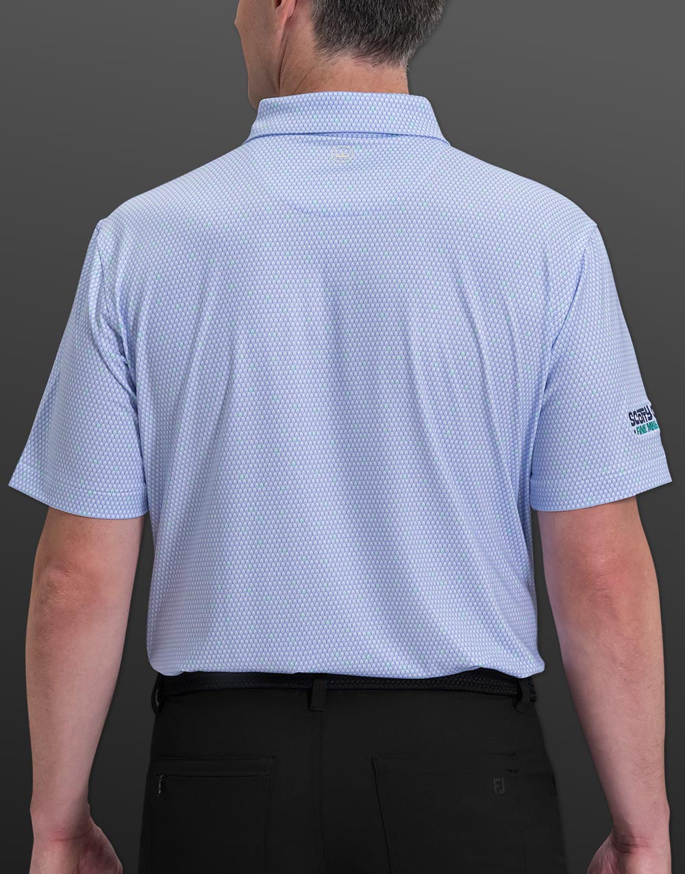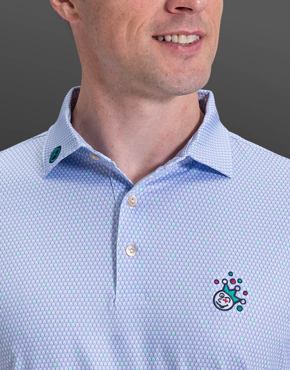 Jackpot Johnny is back expertly embroidered on this 92% polyester / 8% spandex Summer Comfort performance polo with four-way stretch, wicking and UPF 50+ sun protection featuring a custom-designed geometric skull print for added style. Finished with a spread collar and three-button placket, this polo shirt also includes our Circle T on the collar, as well as our SC Malibu sleeve emblem.