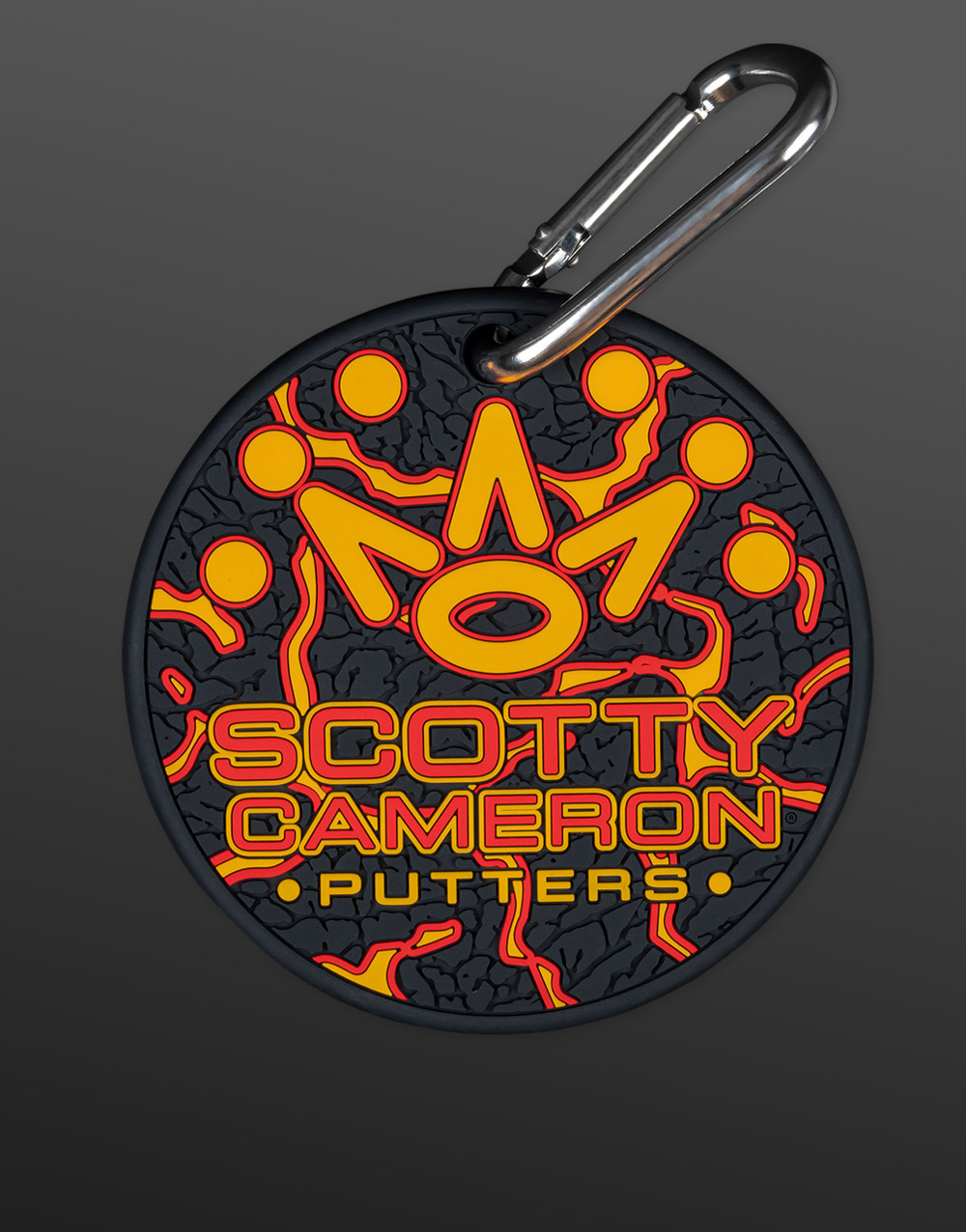Inspired by the lava flows of Kilauea, Scotty's Circle T putting disc was made with a Lava Rock magma-spewing pattern to heat up your practice game. It can also be a bag tag or cool beverage coaster, as it comes with a convenient carabiner to easily clip it anywhere. Colorfully crafted, this unique item is made from rubber and built to last. Aloha!