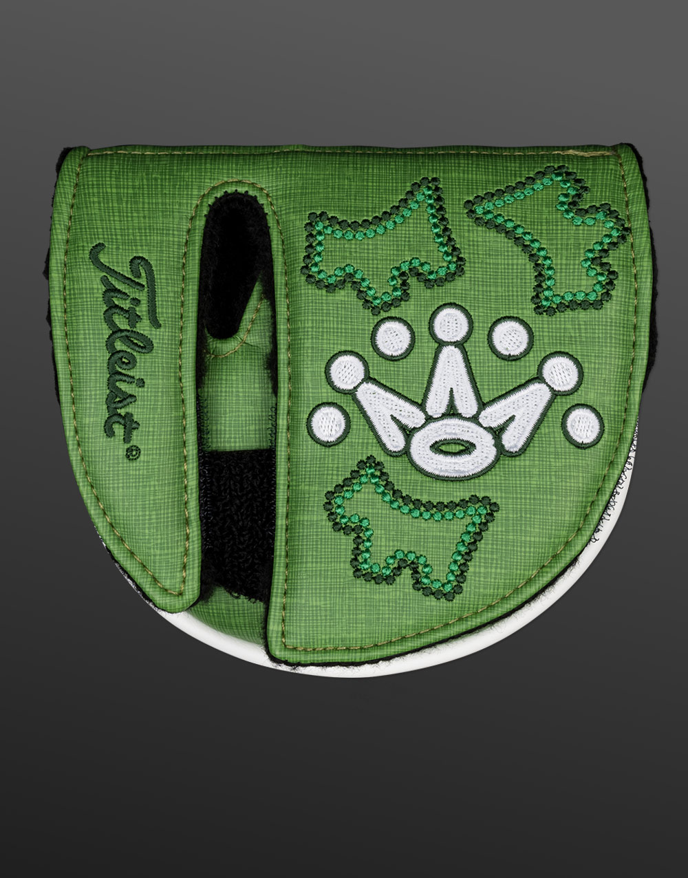 Our iconic Scotty Dog is right at home in a dancing display of green Lawn Dogs on this limited release mid-round headcover, designed and crafted to celebrate the first major of the season. A fitting color and tribute to Scotty's favorite event in Georgia, this specialty headcover is made for right-handed mallets like the new Phantom models.
