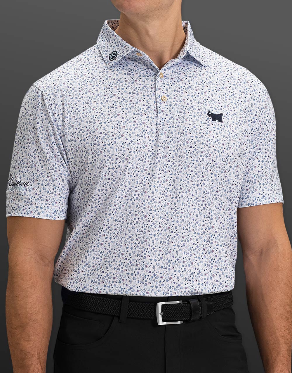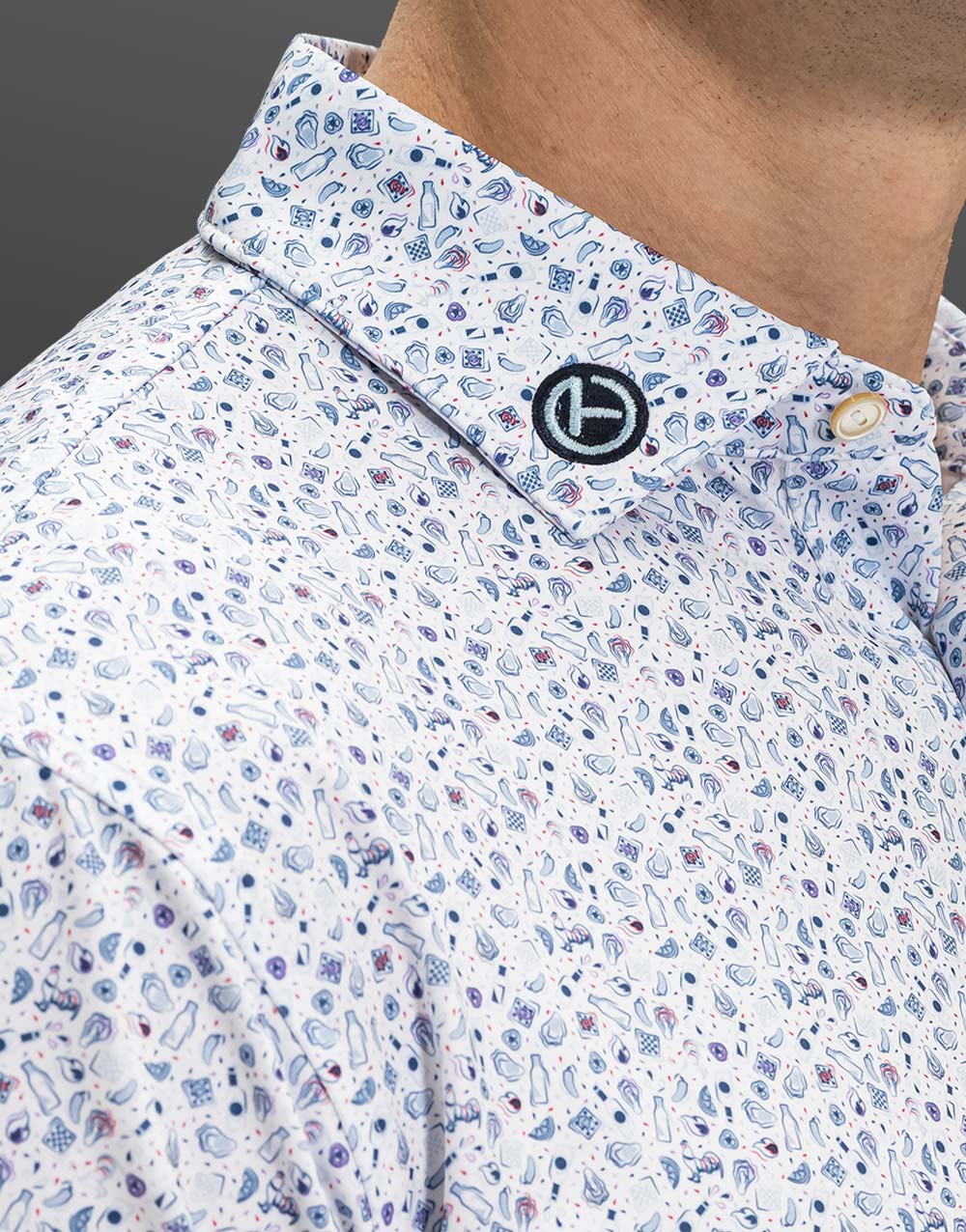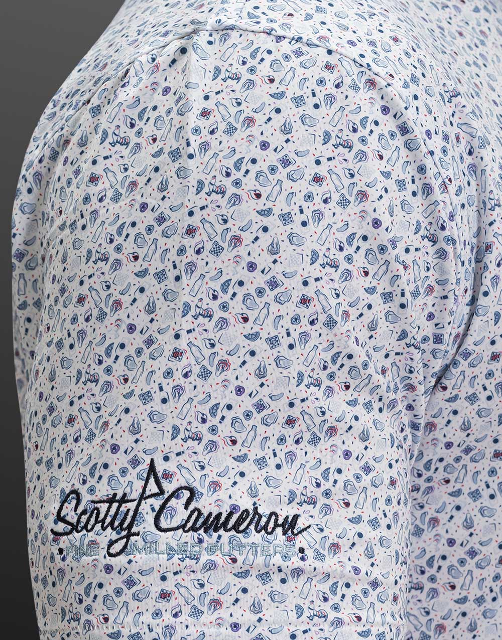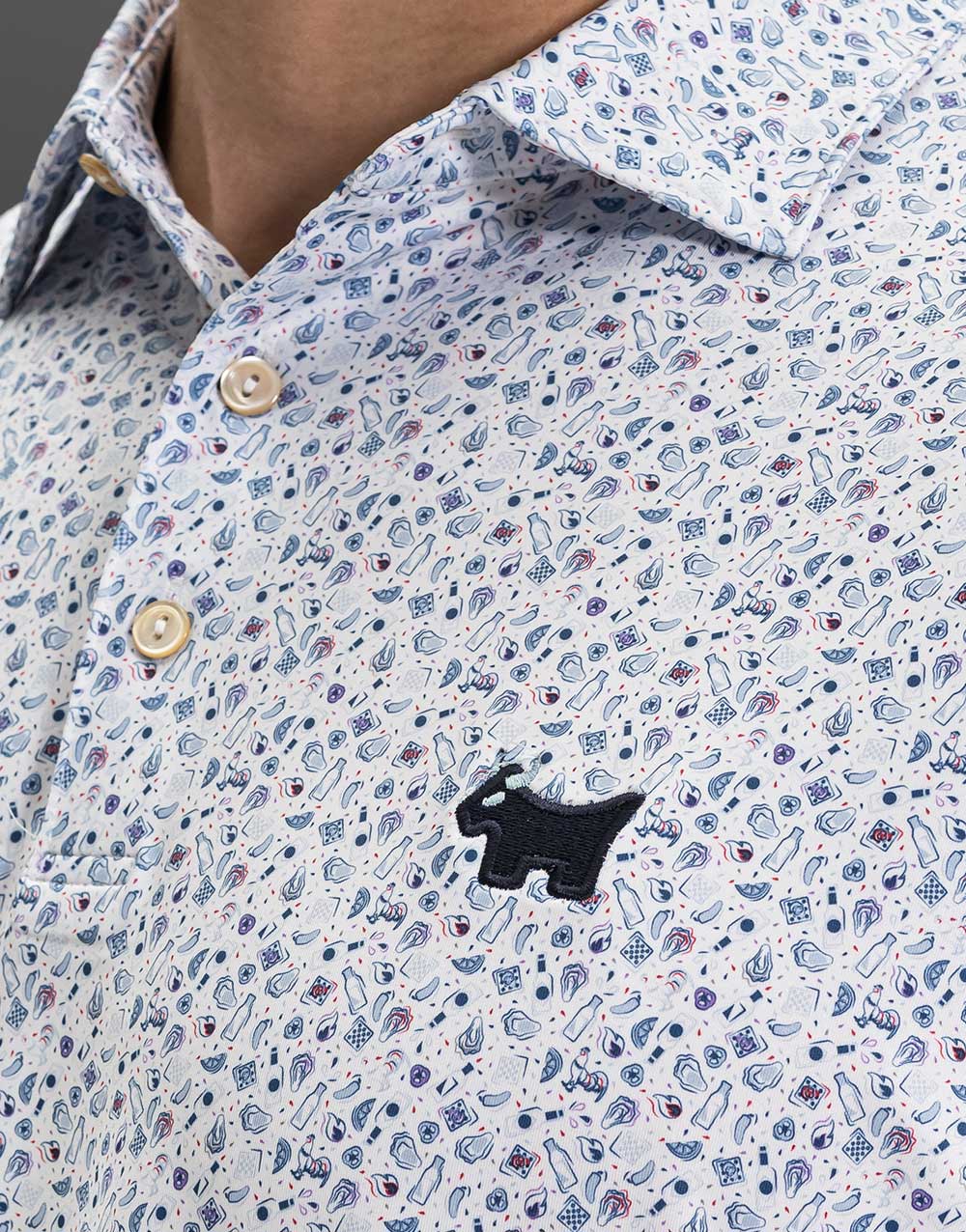 Our Scotty Bulldog, Circle T and PinFlag emblems are nicely complemented by the custom-designed oyster roast scene printed on this classic fit performance polo crafted with Summer Comfort fabrication (92% polyester / 8% spandex). This lightweight, easy-care fabric wicks moisture and stretches four ways while offering UPF 50+ sun protection.