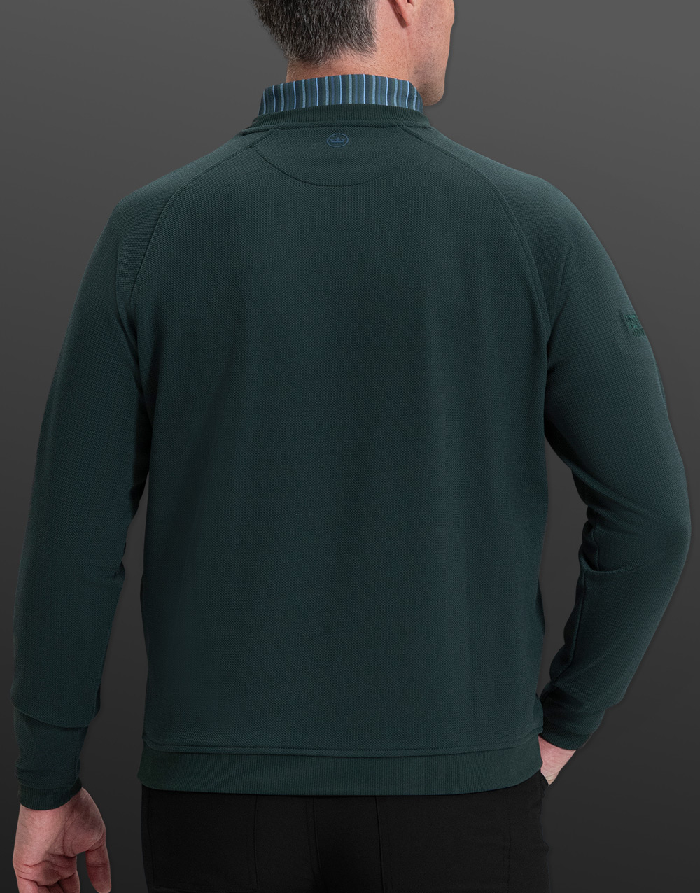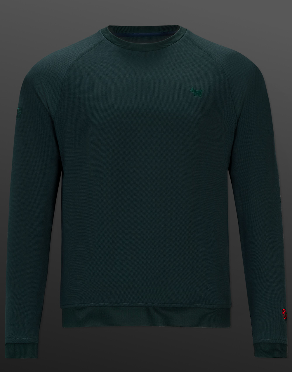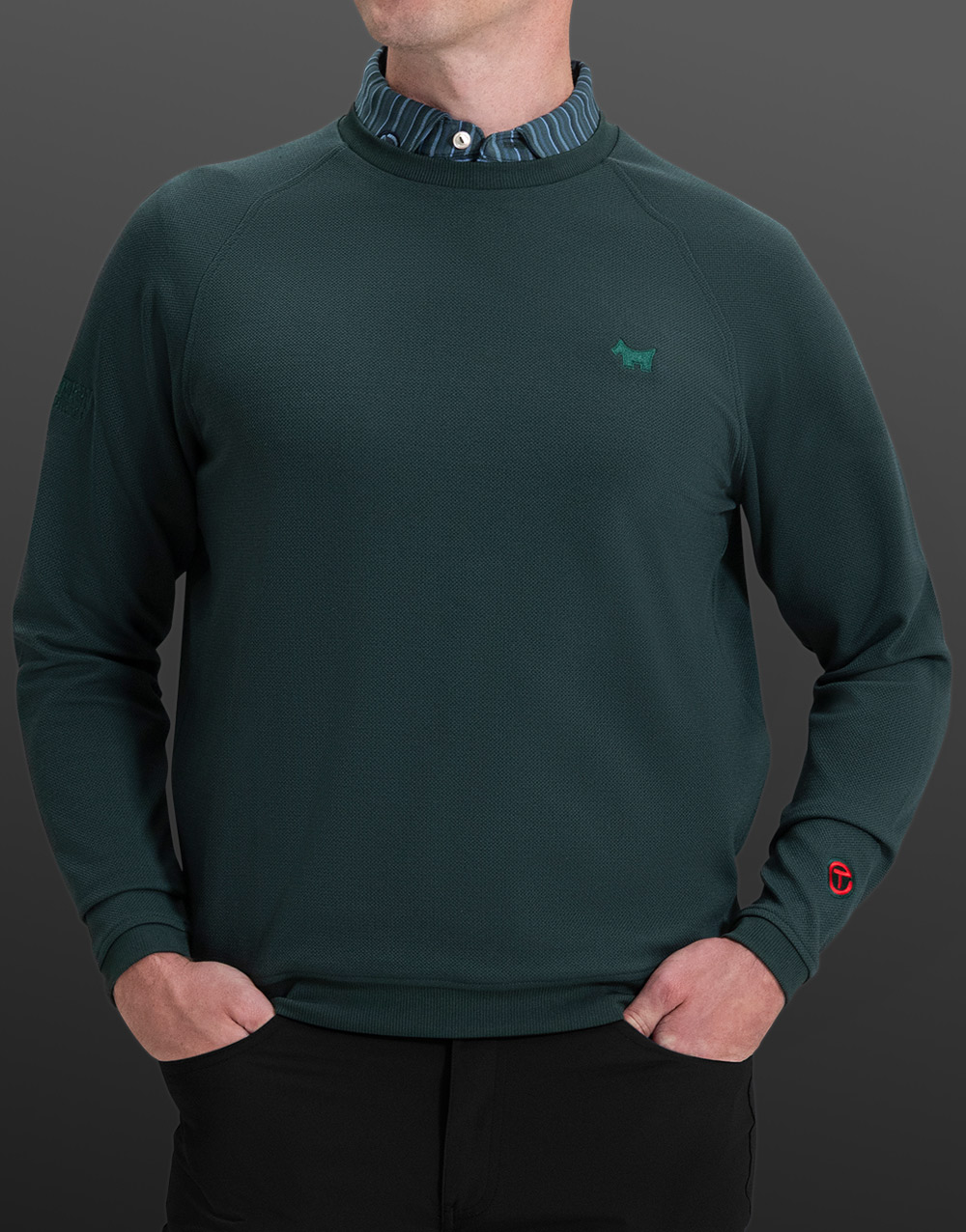 A perfect companion to the Crown & Co. polo shirt, this Cradle crewneck in nordic pine features our expertly embroidered Scotty Dog, Circle T and SC Malibu emblems on an all-new textured piqué knit pullover made from a 97% polyester / 3% spandex blend. A must-have on or off the golf course, this comfortable second layer is finished with raglan sleeves, banded cuffs and hem for a modern classic with a sweater-like look and feel.