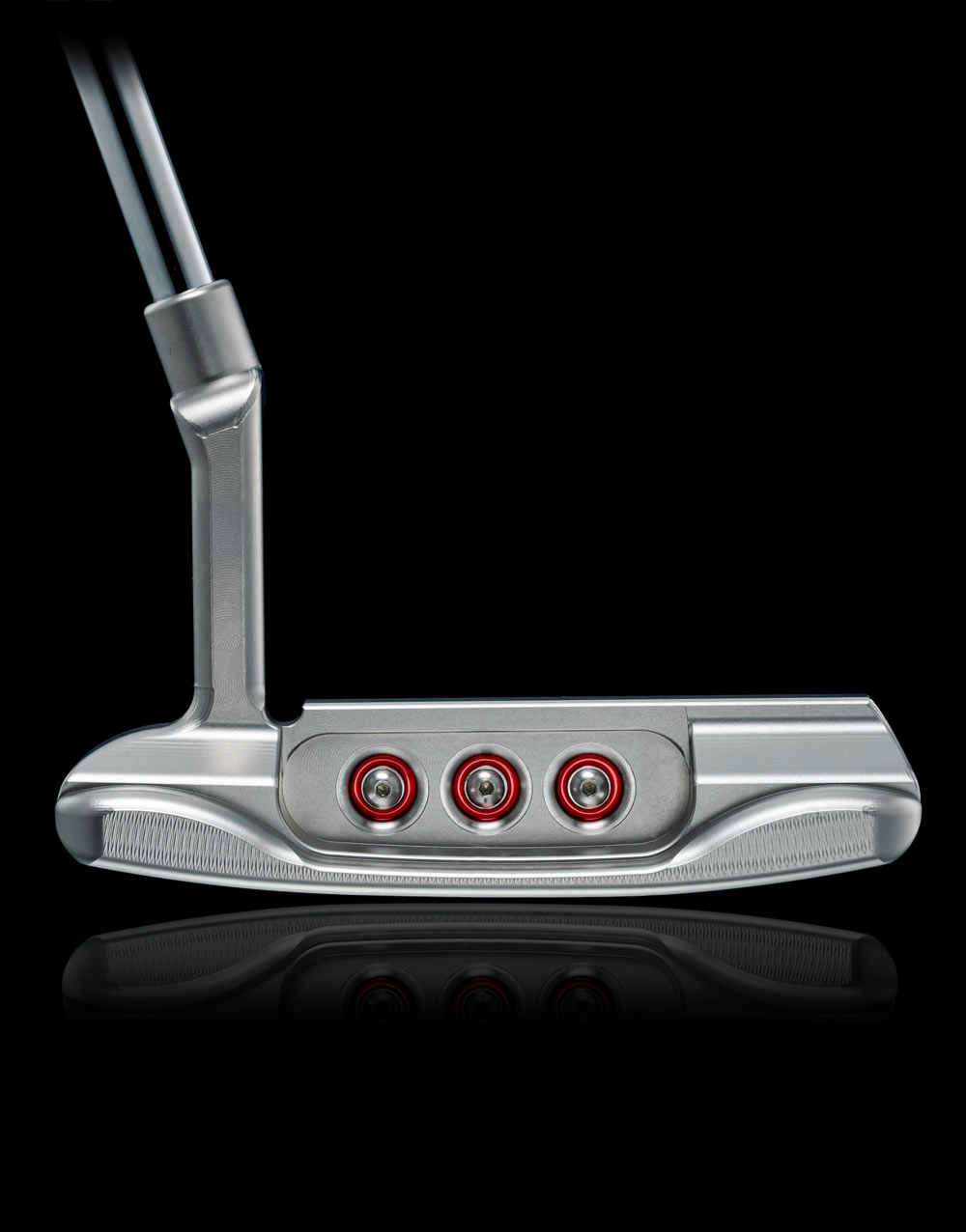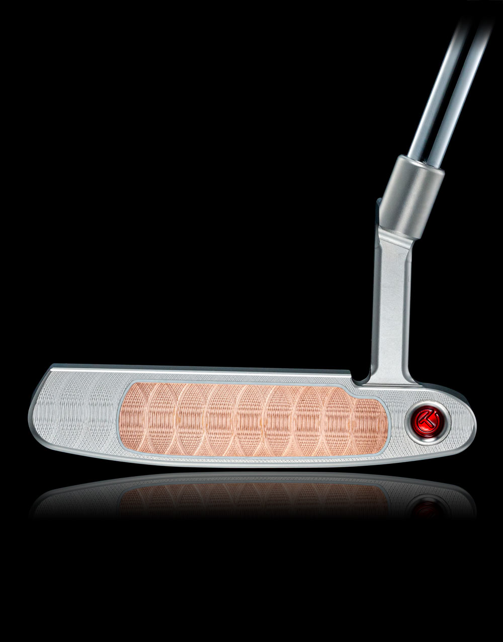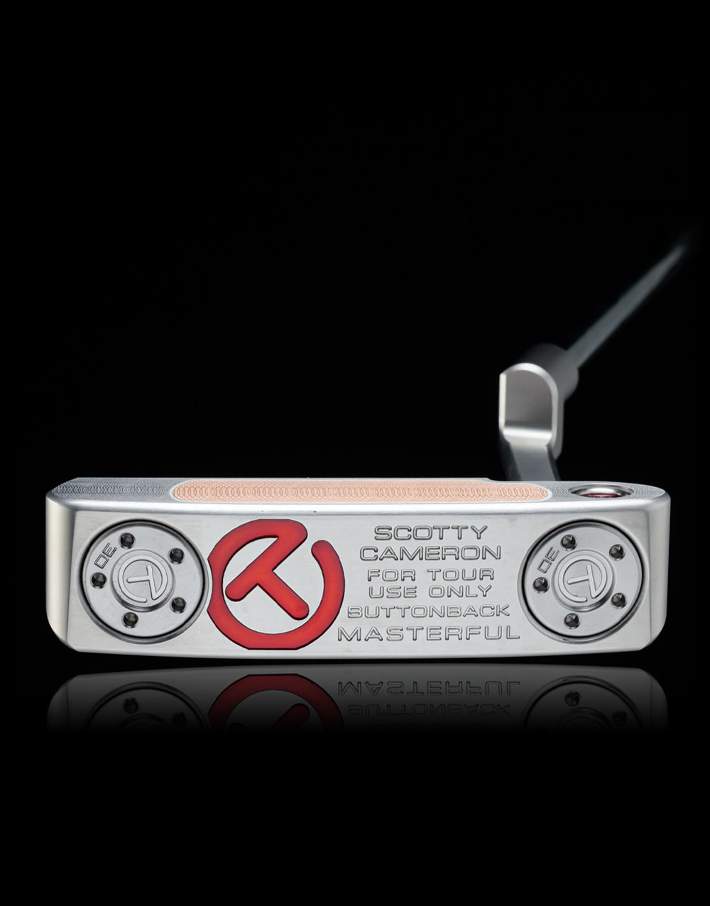 With its classic Newport-style shape, this 34-inch Select Masterful Buttonback Tour Prototype not only has a Teryllium inlay, but also Scotty's Button Back design for a Tour Only model you're seeing here naked, without sight lines, accessorized with a Pistolini Plus grip and a Smoky Stick Figure Circle T headcover.