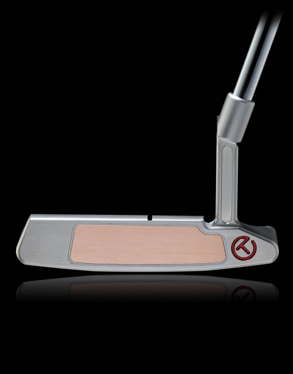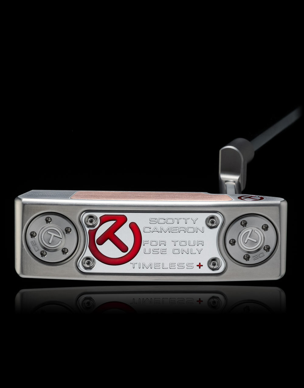With its classic Newport 2-style shape with a slightly wider flange, this 34-inch Select Timeless+ Buttonback Tour Prototype not only has a Teryllium inlay, but also Scotty's popular Button Back design for a Tour Only model accessorized with a Tour Only Slim Full Contact grip and a Rush Rocket Stick Figure Circle T headcover.