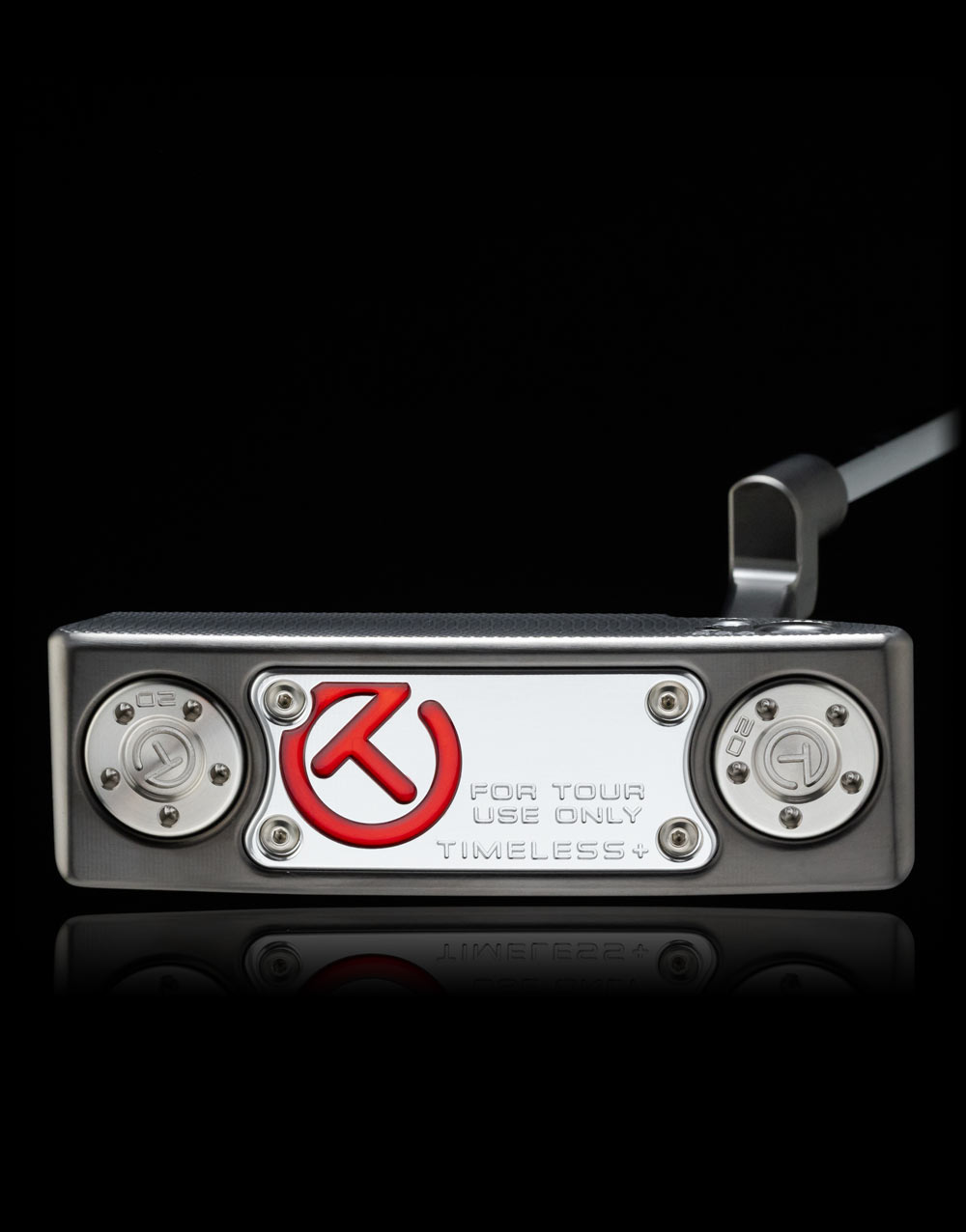 This 34-inch Select Timeless+ Tourtype SSS in our Tour Black finish incorporates a 6061 aircraft grade aluminum sole plate with a precision milled solid stainless steel face for a shape with increased MOI. This one includes a Tour Only Full Contact grip and a Smoky Stick Figure Circle T headcover.