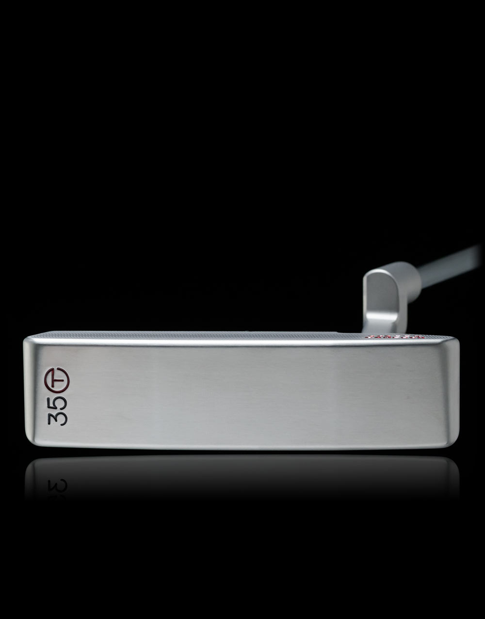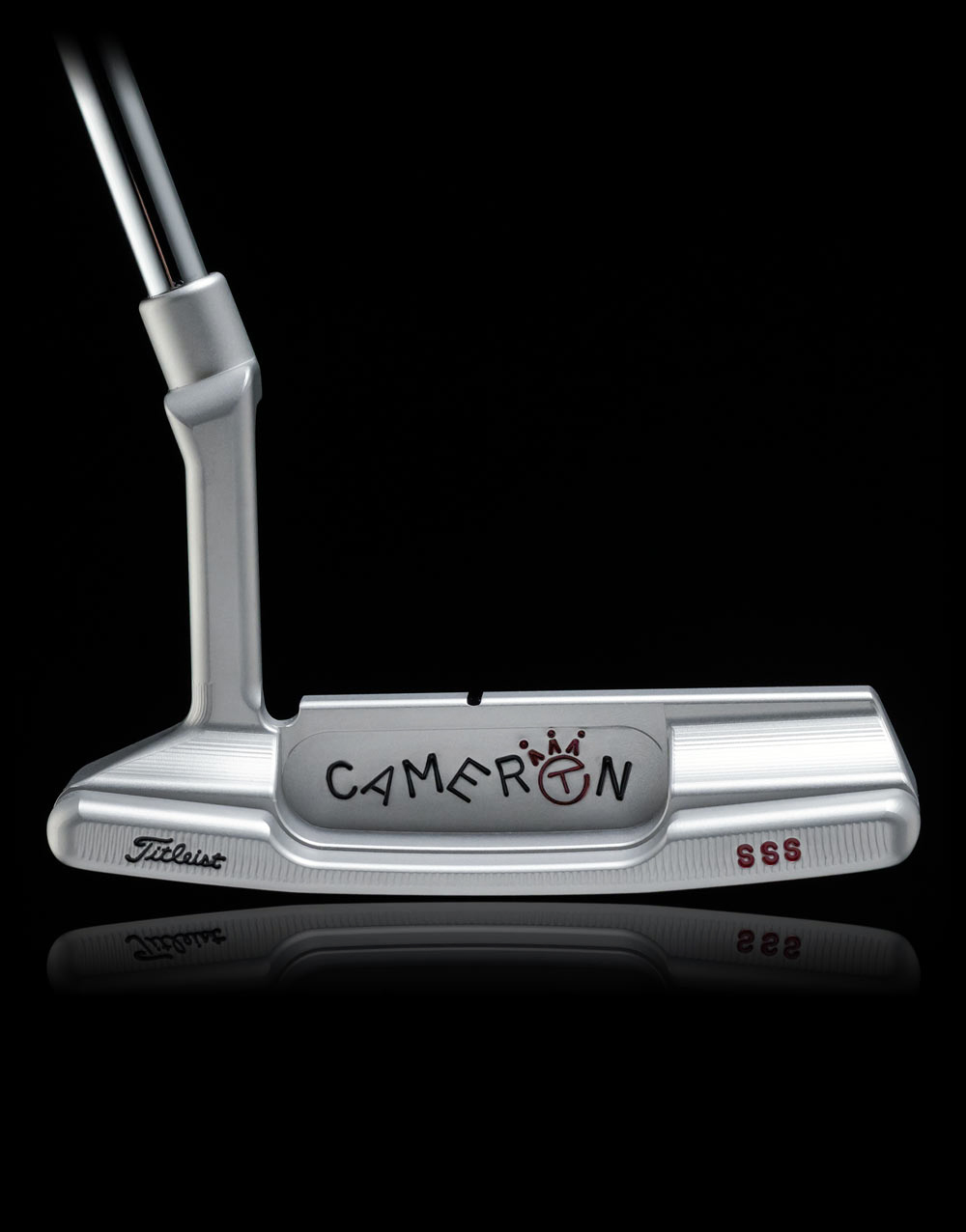 Hand-stamped with a Dancing Cameron and Crowned Circle T, this 34-inch Timeless TT (Tour Type) SSS will remind you of Tour putters you've seen raised in victory on the worldwide professional golf tours with its 350-gram Studio Stainless Steel construction and subtle tri-sole design. This one includes a Tour Only Pistolini Plus grip and a pink Camo Bulldog Circle T headcover.