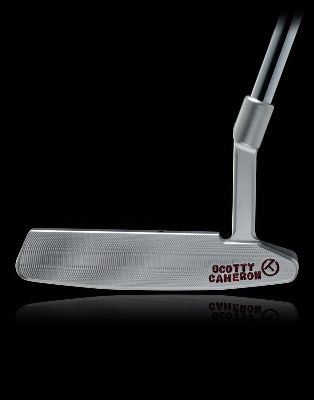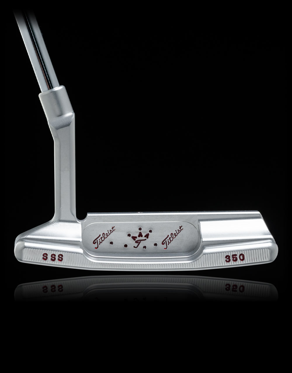Hand-stamped with a flying Titleist "T" Crown flanked by two Titleist Scripts accented with translucent red paintfill, this 34-inch Timeless TT (Tour Type) SSS is a 350-gram Tour putter with a milled sight dot, a Tour Only Pistolini Plus grip and a Smoky Stick Figure Circle T headcover.