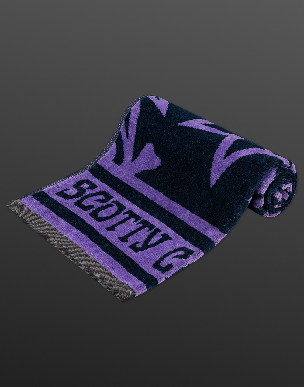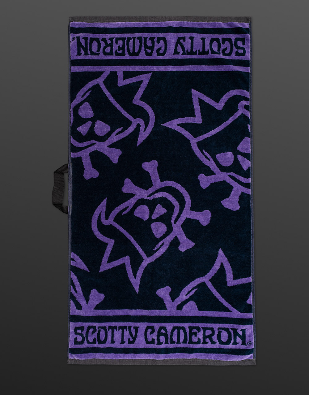 Featuring dancing Tour Jesters, this new purple golf towel comes at a perfect 36.5-in x 19-in size and is crafted from 100% sheared cotton velour with a nylon-webbed loop that keeps it close and easy to hang over a club during your round.
